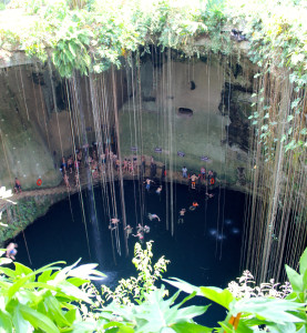 By this time it’s just past noon and a lunch stop is well-timed. For this we stop at Sacred Blue Cenote (see-NO-tay) in Ik Kil where we also had the option to go for a dip. THAT was refreshing! And pretty, too. The depth is apparently close to 50m, and several people jumped in from higher ledges to make a splash.