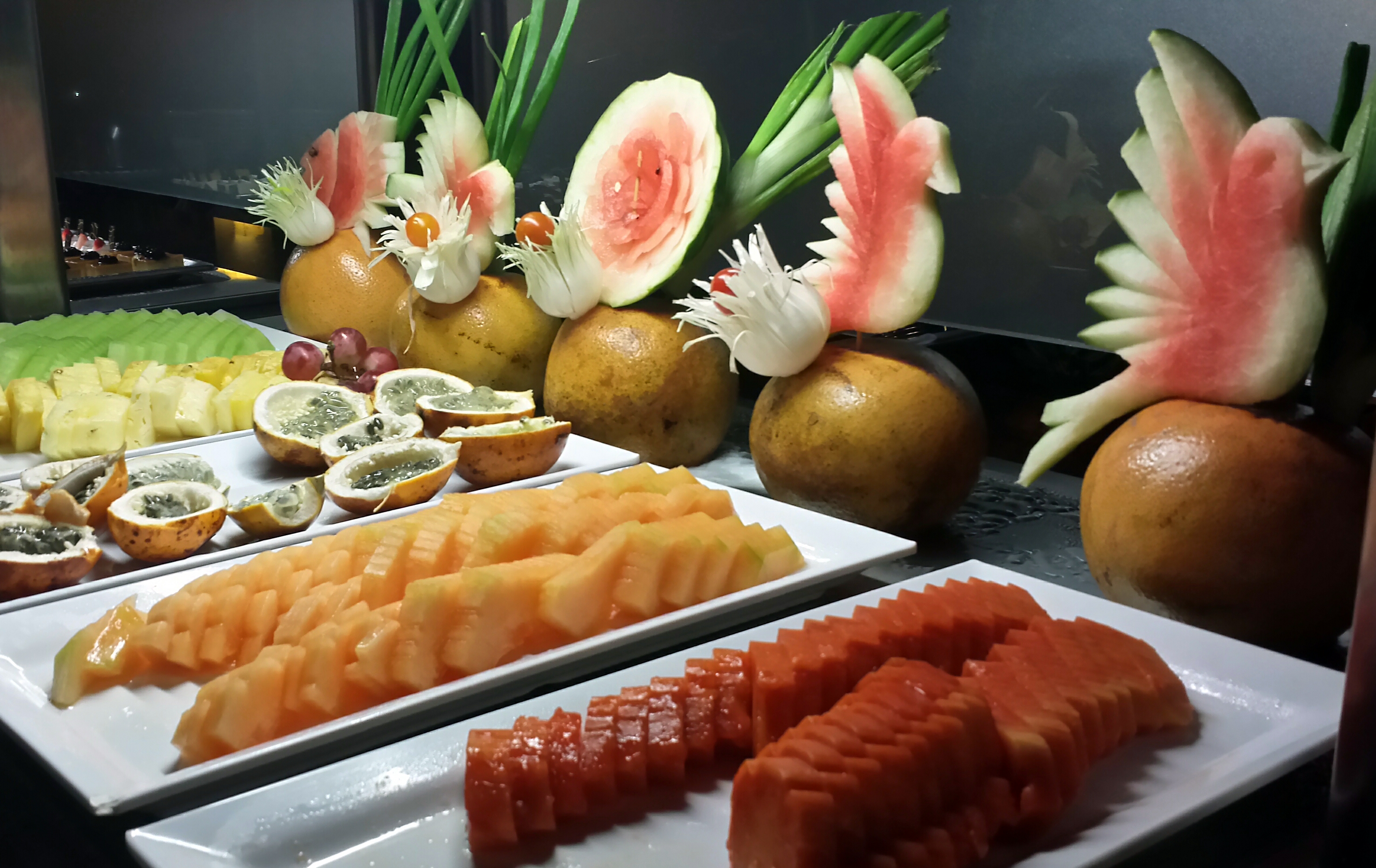 After being reunited with our luggage, we all met up again to get some dinner, and the Akumal Bay buffet did not disappoint. This is possibly the second largest spread I’ve seen, approaching the decadence of the Belagio feast Sharon and I enjoyed in Las Vegas on our 25th anniversary. The food was very good and the service was just right – always ready with a refill or ready to take your plate, never in your face. Scott was amused to recognized one of the waiters from his previous visit.